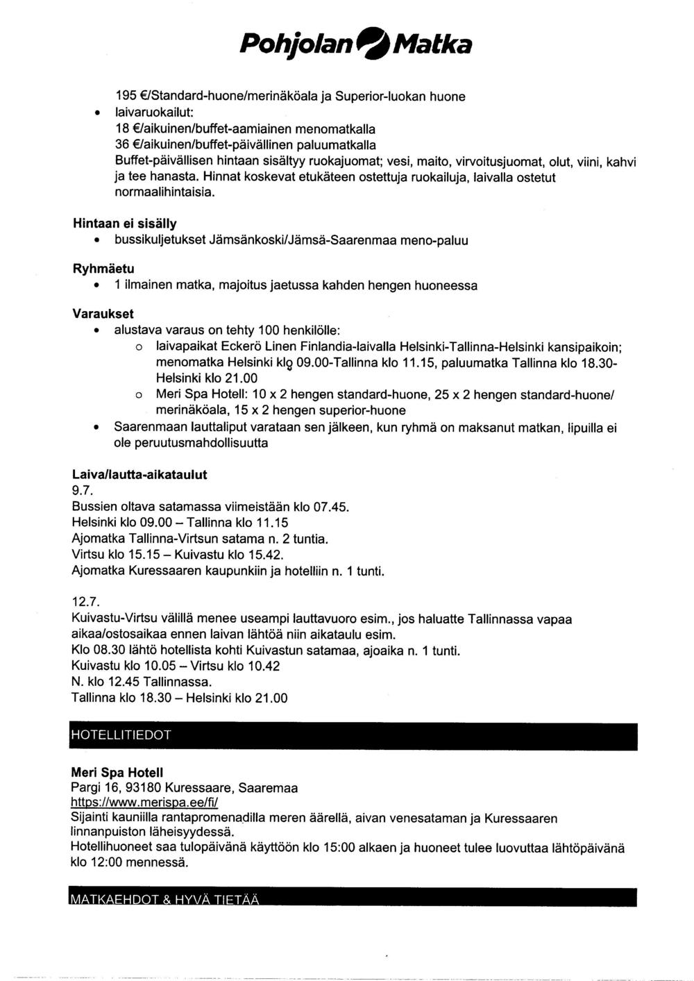 Jämsän 107 osaston jäsenille avecin kanssa matkan hinta 120€/hlö (omavastuu), osasto maksaa loput.